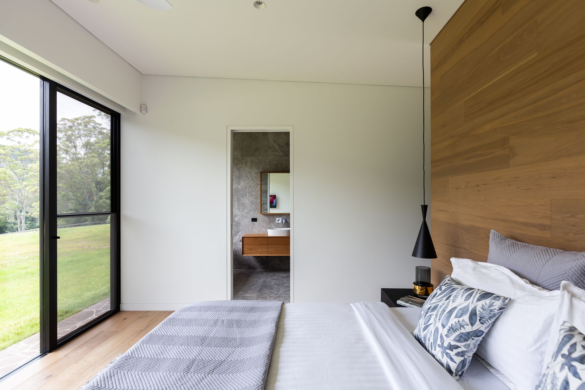The sleeping quarters sleep 8 guests across 4 large bedrooms. The master, with a king bed, has an ensuite with a bath, shower and toilet. The second king bedroom has an ensuite with a shower and toilet, while the third king bedroom and the bedroom with 2 queen beds share a bathroom with a shower and toilet. All bedrooms are positioned to have fantastic views of the surrounding bushland and escarpment!